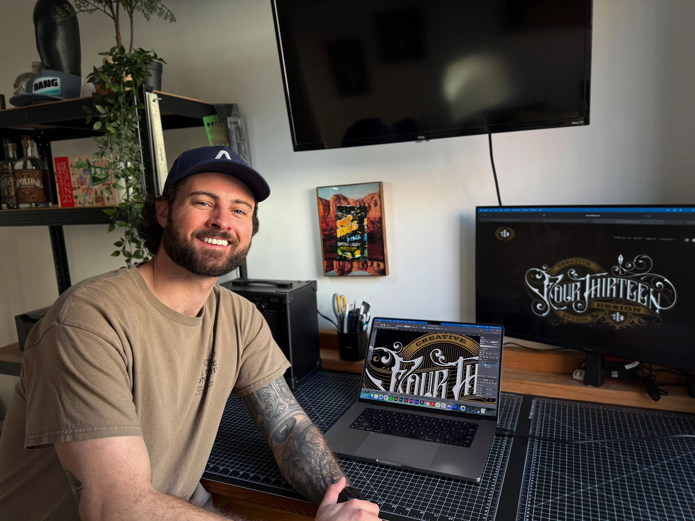 Hello there, my name is Evan Iuzzolino, Graphic Designer and Founder of Four Thirteen Design. Over the course of my career, I’ve worked both in-house and in the agency world, gaining valuable experience that has ultimately led me to my own creative business. As a one-man studio, Four Thirteen is not only able to offer more personal experiences, but can also deliver agency quality work at budget-friendly costs. While my specialties have always been in lettering and ornate design, my services extend through all things branding, packaging, websites, murals, hand painted signage, and even wedding stationary. Learn more about my services below.
