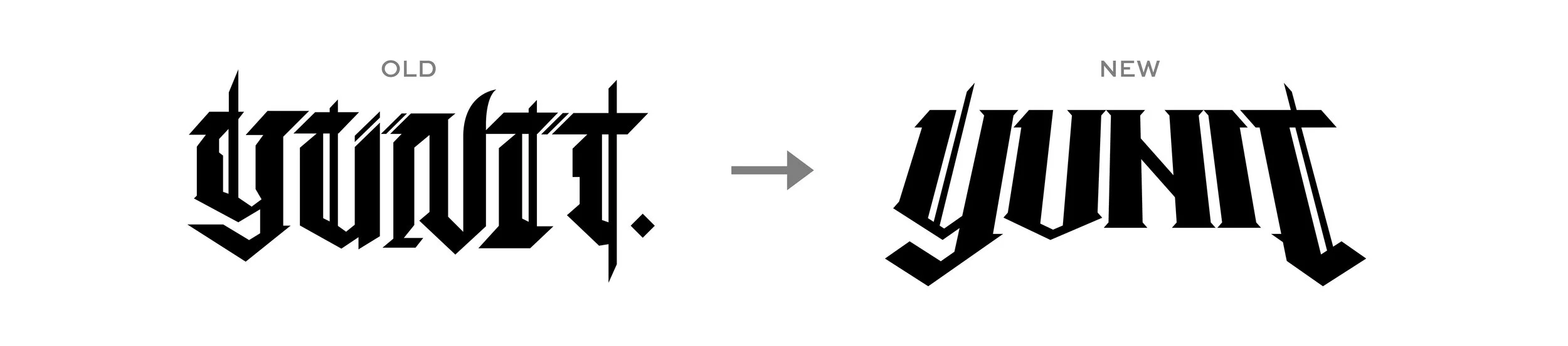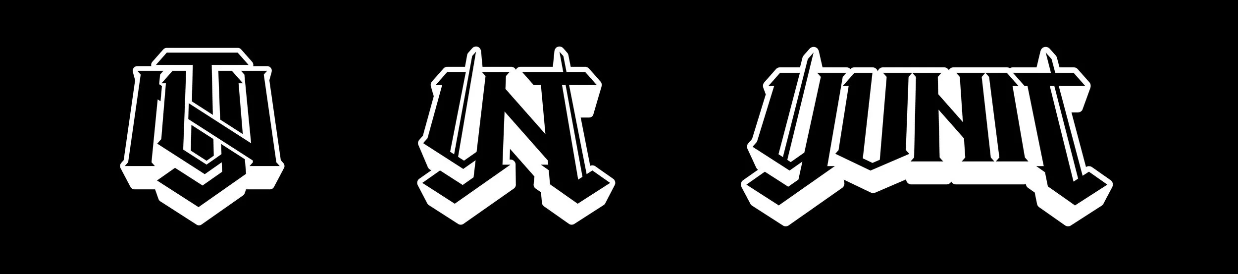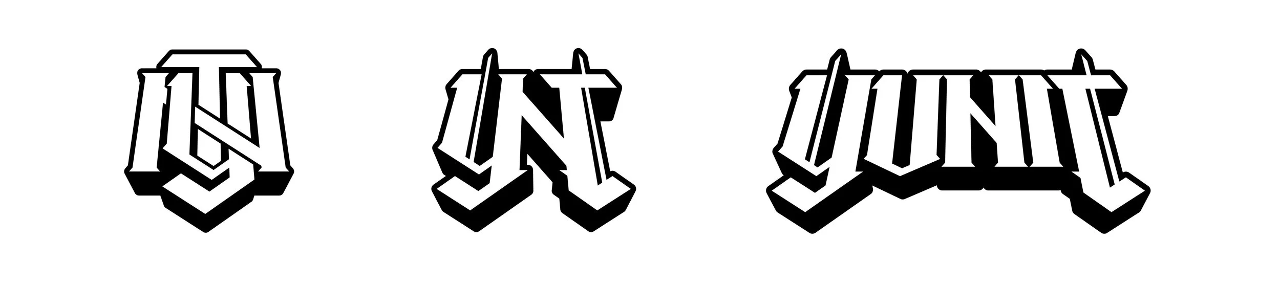 Yunit has been around the dubstep scene for a bit, and his original logo has existed since 2018. He was looking to make updates to increase legibility, and move closer to a more timeless mark stylistically. We explored some additional directions, but overall the design we landed on helped maintain recognition among his existing fans as well as achieve the goal of the project. We were able to salvage certain pieces of the existing letterforms, helping to connect back to his existing look.